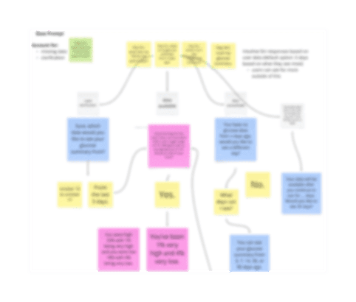 I used an affinity diagram to code our data, which we parsed using Otter.ai transcriptions, into 6 key insights that encapsulated experiences with diabetes.
