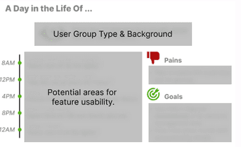 Similar to a user persona with pains and gains, a map identified when and where we could implement or enhance VUI usage.